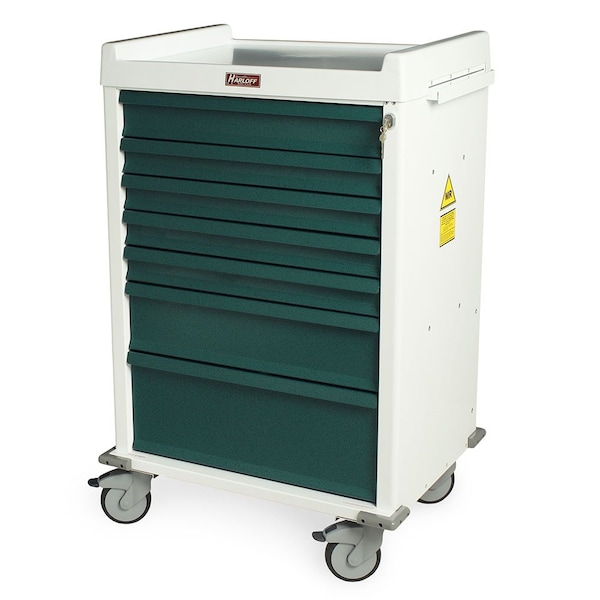 Harloff’s line of MRI safe carts are made from a lightweight aluminum body and drawers and non-magnetic or “weakly magnetic" components. This allows each cart to meet American Society for Testing and Materials (ASTM) international designations of MR-Conditional for use in a 3 Tesla or less environment of the Magnetic Resonance Imaging Suite. It also makes these MRI safe carts very lightweight and, when combined with the low-ferrous 5′′ sealed ball-bearing casters and replaceable plastic top with integrated push handles, it makes these carts very easy to manuever around. Other cart features include full extension drawer slides, protective corner bumpers, a pull out shelf and pre-threaded mounting holes for easy attachment of optional accessories. This MRI safe cart secures with a BEST® brand lock on cabinet and comes with two included keys.