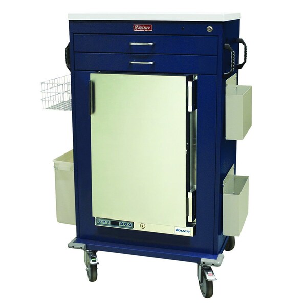 Premium Large Malignant Hyperthermia Cart with Lab Quality FOLLETT #REF2 1.8 cu ft Refrigerator, 2 - 3 in Storage Drawers, Keylocking Drawers and Refrigerator. Package Includes Waste Container With Mounting Bracket, Large Wire Basket and Two Document/Chart Holders.