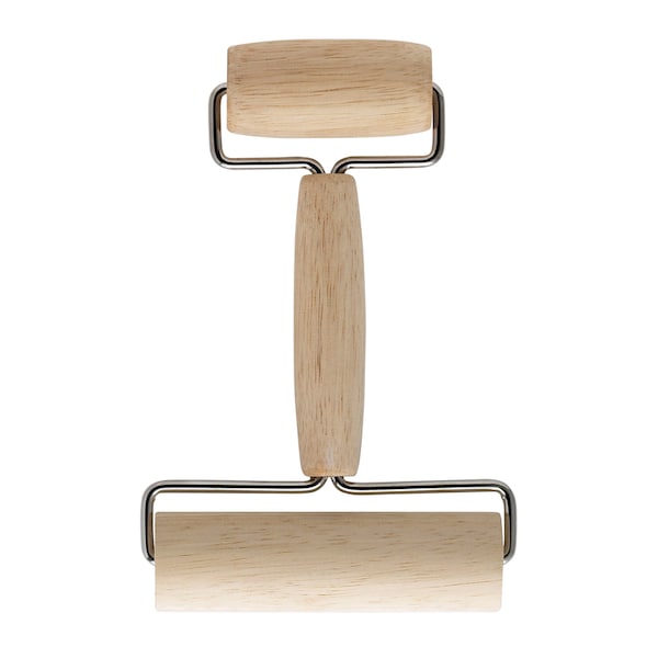 Mrs. Anderson's Double Dough Roller easily rolls dough right in the pan for pie crust, cookies, and pasta that cooks evenly with tastier results. Made with wooden rollers; perfectly balanced for easy use and smooth, effortless rolling. * Easily roll out dough right in the pan to a uniform thickness; larger roller spreads dough out evenly; smaller roller smooths edges and sides. Ideal for home and professional bakers and pastry chefs; roll dough for pie crusts, pasta, cookies, fondant, even crafting clay, and more. Larger roller (4-inches wide); smaller roller (2.5-inches wide); compact for easy storage; easy to use and clean; wipe with a damp cloth