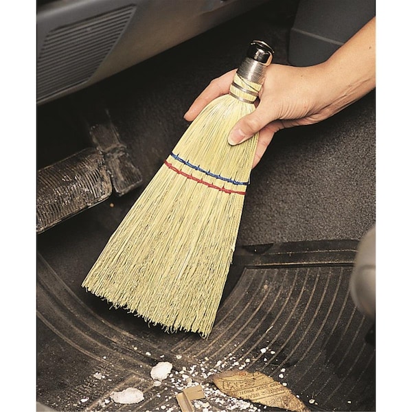 Whisk Broom features stiff corn bristles to sweep up dirt and debris in small areas such as floorboards, corners and benches. Measures 12"L overall.