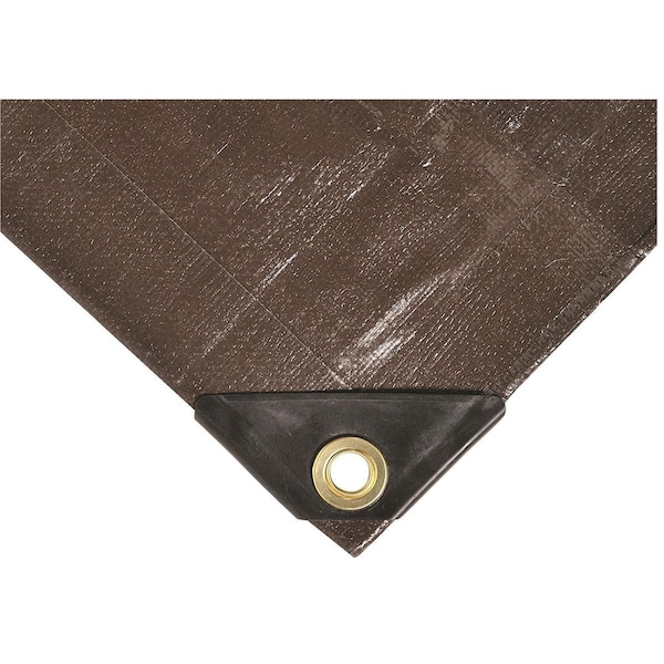 This 8-oz. Extreme-Duty Tarp provides heavyweight protection from the elements in conditions that would destroy a lighter-weight tarp. Ideal for covering farm machinery or keeping firewood dry. Brown color. NOTE: Actual finished size may be 3–5% shorter than the size listed due to the tarp-making process.
