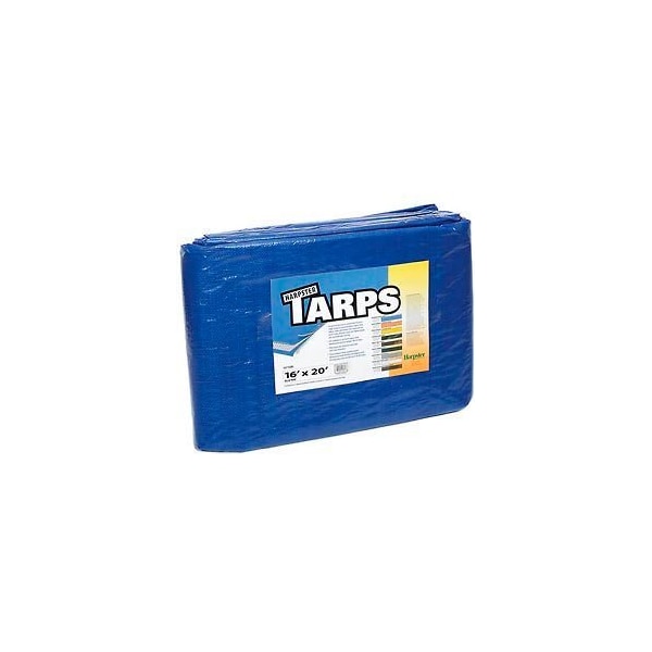16' X 20' LIGHT DUTY 2.9 OZ. TARP, BLUE - B16X20 THIS 16 FT. X 20 FT. WOVEN POLY TARP IS WATERPROOF, MILDEWPROOF, TEAR RESISTANT AND ACID RESISTANT. 2.9 OZ. PER SQUARE YARD, 5-6 MIL THICK, 8X10 WEAVE COUNT AND GROMMETS APPROXIMATELY EVERY 36". FINISHED SIZE APPROXIMATELY 2% OR 6" SHORTER. TARP IS LIGHTWEIGHT YET DURABLE, MANUFACTURED FROM HIGH-DENSITY POLYETHYLENE AND WOVEN INTO FABRIC AND THEN LAMINATED ON BOTH SIDES THEN FINISHED BY HEMMING THE EDGES WITH POLY TWINE INSERTED IN HEM. ALL SEAMS AND HEMS ARE HEAT SEALED. UV TREATED.