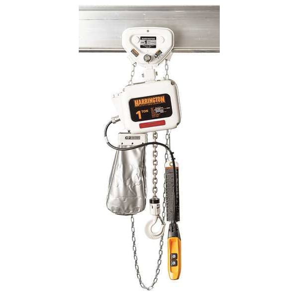 Electric Chain Hoist, Duty Classification H4, Mount Type Geared Trolley, Maximum Lifting Capacity 1,000 lb, Number of Speeds 2, Programmable Programmable by VFD, Fixed Lift Speed Not Applicable, Minimum Lift Speed 2.5 fpm, Maximum Lift Speed 15 fpm, Trolley Speed Not Applicable, Maximum Lifting Length 20 ft, Current at Minimum Voltage 3.4 A, Current at Maximum Voltage 3.4 A, Motor Horsepower 3/4 hp, Operating Voltage 460V AC, Headroom 16 5/16 in, For Minimum Beam Height 3 3/16 in