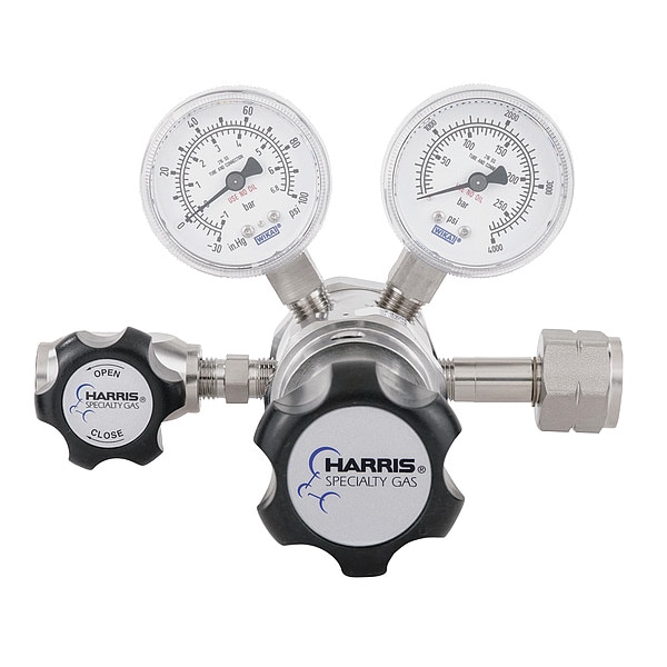 High Purity Gas Regulator, Mounting Type Cylinder, Number of Stages Two Stage, Compatible Gas Type Hydrogen, Methane, Control Type Knob, Maximum Inlet Pressure 4,350 psig, Inlet Connection Size 0.825 In.-14, Inlet Connection Gender Male, Inlet Connection Type NGO, Inlet Thread Direction Left Hand, Outlet Pressure (Maximum) 50 psig, Outlet Connection Gender Female, Outlet Connection Size 1/4 in, Outlet Connection Type NPT, Gas Purity Rating 99.9999 Percent