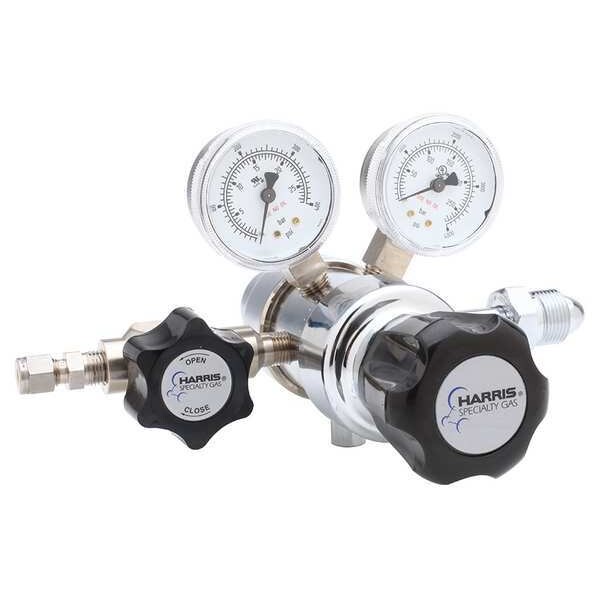 High Purity Gas Regulator, Hydrogen, Methane, Two Stage, 0.825"-14 Inlet, 1/4 in Outlet