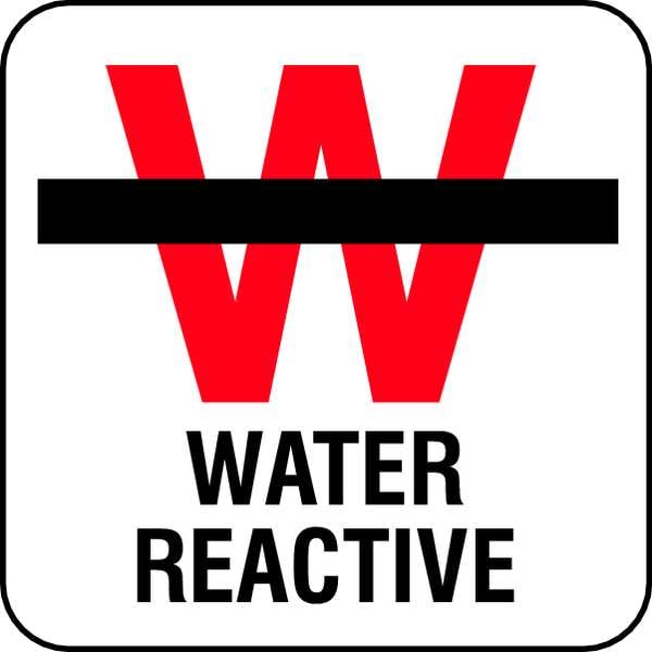 Label, Square, Number of Printed Sides 1, English, Sign Legend Water Reactive, Sign Legend Style Symbol and Text, Package Quantity 500