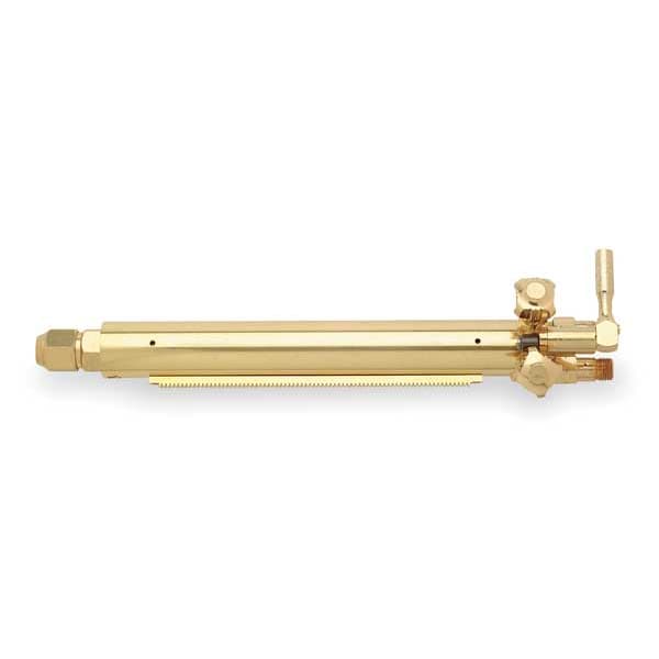 Machine Cutting Torch, Compatible Fuel Type Natural Gas, Propane, Propylene, Cutting Torch Series 98-6F, Head Angle 180 Degrees , Overall Length 10 in, Maximum Cutting Thickness 8 in, Inlet Connection Size 9/16 In.-18, Hose Fitting Size B, Weight 3.3 lb, Compatible Cutting Tip Series 6290-VVC, 6290-VVCM, 6290-VVCP, 6290-VVCU, Torch Style Harris, Torch Type Machine, Body Material Brass, Duty Rating Heavy Duty, Features F Injector or Low Pressure Mixing System, Lever Type Cutting Valve