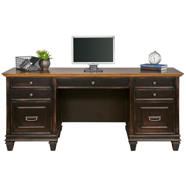 The classic style elements of the Hartford credenza makes it a perfect addition to any home. The credenza includes drop front keyboard pencil drawer, three utility drawers, one locking letter/legal file drawer, faux drawer door with printer pullout, and a power center with two AC power outlets and three USB 2.0 connections.