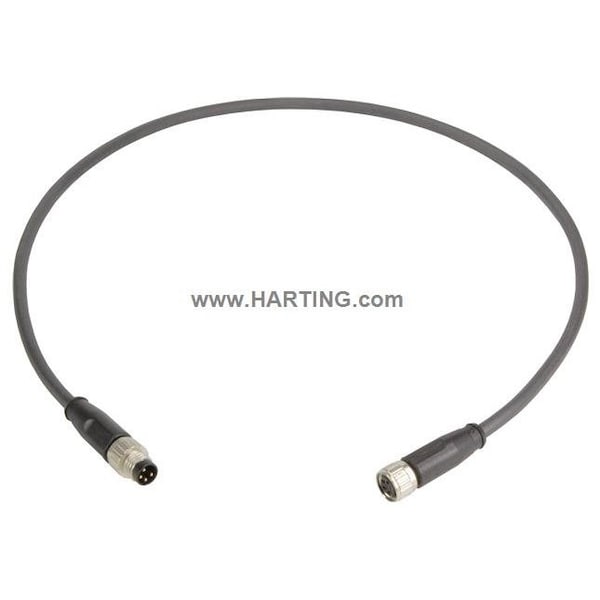 Cordset, End 1 Gender Female, End 1 Number of Pins 4, End 1 Mounting Orientation Straight, End 1 Connection Type M8, End 2 Gender Male, End 2 Mounting Orientation Straight, End 2 Number of Pins 4, End 2 Connection Type M8, Cable Length 2 m, Cable Jacket Color Black, Cable Jacket Material PUR, Wire Size 0.25 sq mm, Maximum Operating Temperature 176 Degrees F, Minimum Operating Temperature -13 Degrees F, IP Rating IP67