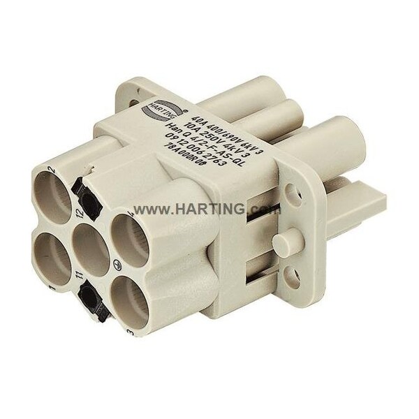 Inserts, Axial screw termination, Female, Polycarbonate (PC), RAL 7032 (pebble grey), Rated current: 40 A, Size: Han-Compact®, Contacts: 4, + 2 additional signal contacts, Conductor cross-section: 4 ... 10 mm2, 0.25 ... 1.5 mm2 Signal, Copper alloy, Silver plated
