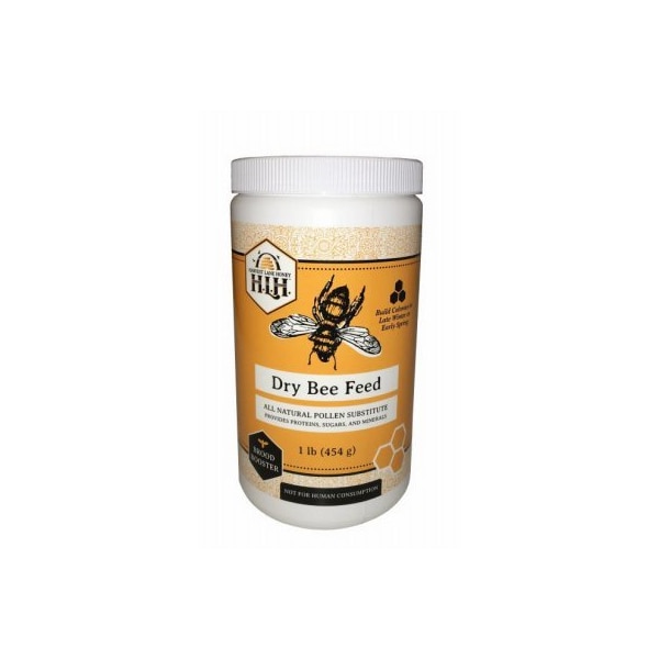 1 lb jar, Dry Bee Feed All Natural Pollen Powder Substitute Formulated to feed bees in early spring and late fall Made with protein, sugars, and minerals Can be fed dry or mixed with sugar syrup to make patties