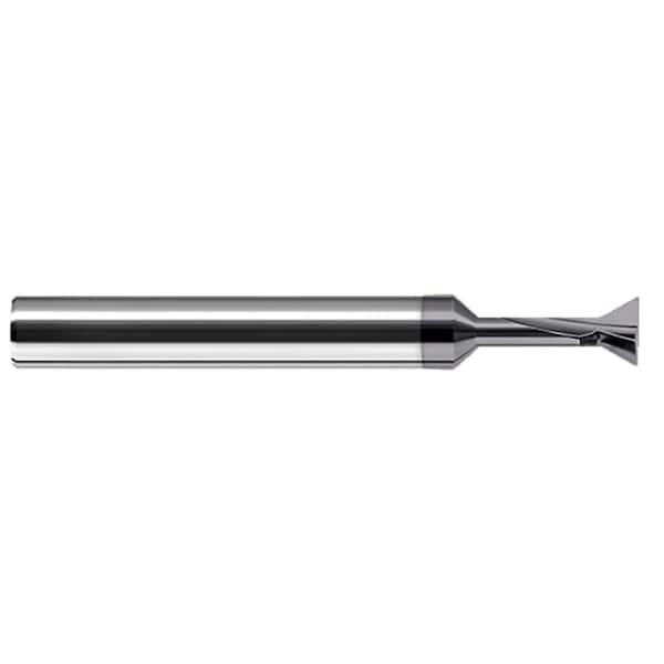 0.1250" (1/8) Cutter DIA x 0.0100" Radius x 0.1250" (1/8) Neck Length x 48° included Carbide Dovetail Cutter, 2 Flutes, AlTiN Coated