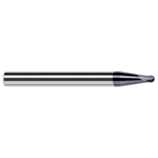 0.0600" Cutter DIA x 0.0480" Length of Cut x 7° 0.8220" Taper Reach Carbide Ball End Mill for Medium Alloy Steels, 2 Flutes, AlTiN Nano Coated