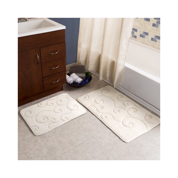 2 pc Memory Foam Bath Mat Set by Hastings Home -Coral Fleece Embossed Pattern - Ivory