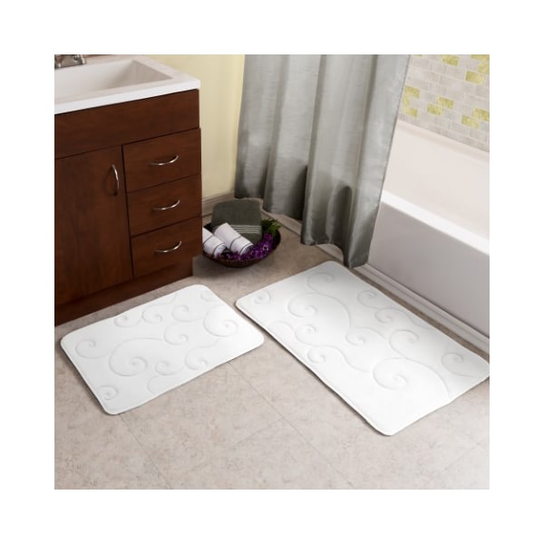 2 pc Memory Foam Bath Mat Set by Hastings Home -Coral Fleece Embossed Pattern - White