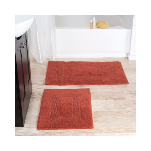 2-piece 100-percent Cotton Bathmat, Reversible, Soft, Absorbent Bathroom Rugs, Brick