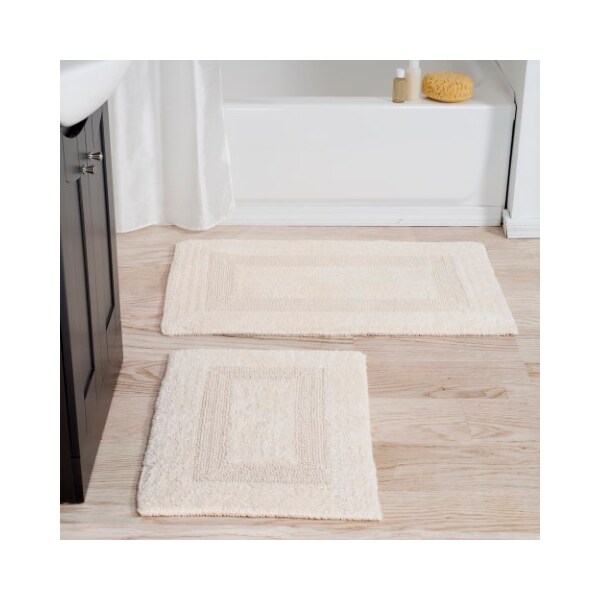2-piece 100-percent Cotton Bathmat, Reversible, Soft, Absorbent Bathroom Rugs, Ivory