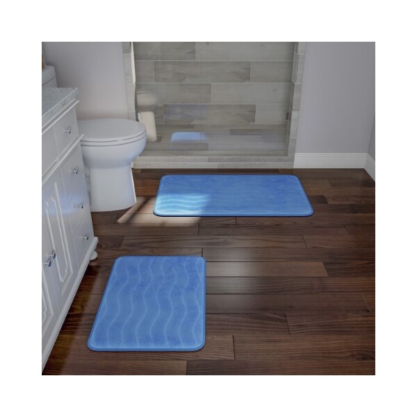 2-piece Bathroom Rug Set, Memory Foam Mats, Wavy Microfiber Non-Slip Absorbent Runner, Blue