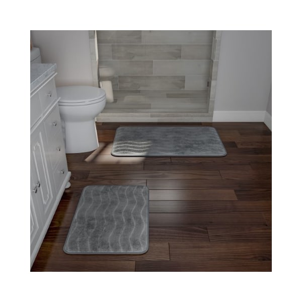 2-piece Bathroom Rug Set, Memory Foam Mats, Wavy Microfiber Non-Slip Absorbent Runner, Gray