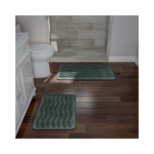 2-piece Bathroom Rug Set, Memory Foam Mats, Wavy Microfiber Non-Slip Absorbent Runner, Green