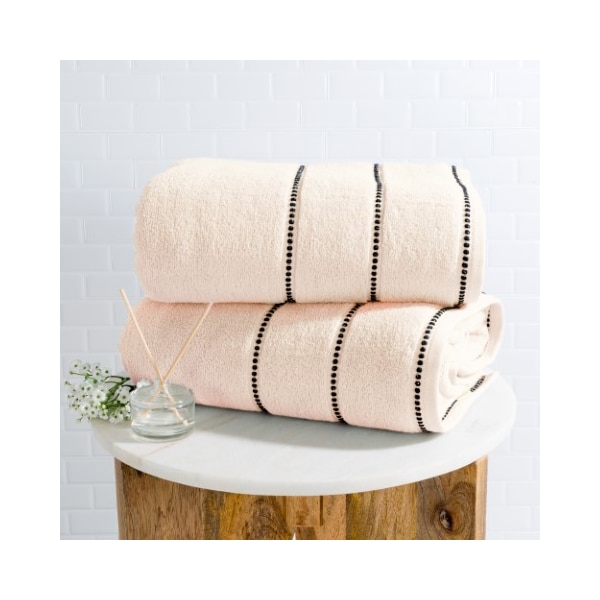 2-piece Luxury Cotton Towel Set, Bath Sheet Made from 100% Zero Twist Cotton, (Bone/Black)