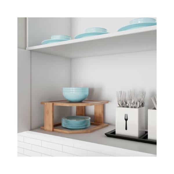 2-Tier Bamboo Corner Shelf for Kitchen or Bathroom Cabinet, Countertop, Cupboard Storage, Organizer