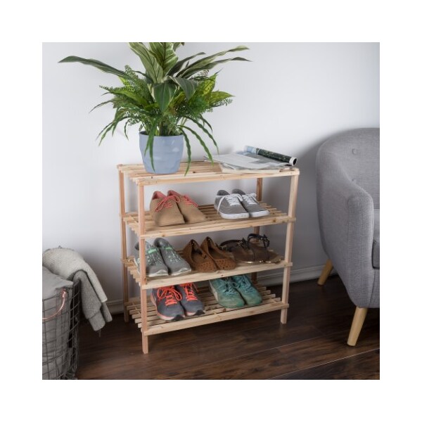 Keep your shoes organized and off the floor with the Wood Shoe Rack from Hastings Home. This elegantly rustic shoe rack will keep your home organized and stylish with its compact design, Perfect for small homes, apartments, and garages. This 4-tier space saver can contain about 12 pairs of shoes to keep your entryway, closet or mudroom away from mess.