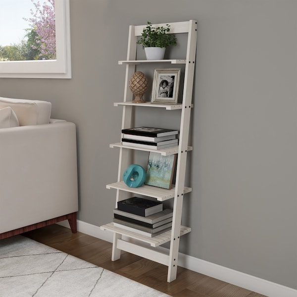 5-Tier Ladder-Style Bookcase, White