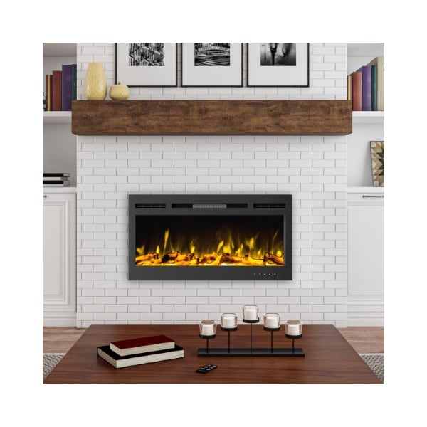 This 36-inch Electric Fireplace by Hastings Home can heat up to 400 square feet and enhance your home decor with its sleek style and ambiance created by the glow of the LED flame. This versatile fireplace is vented in the front so it can be hung or recessed into the wall, has adjustable heat settings, a built-in timer, 2 brightness levels, and 2 media options that all can be controlled by a remote. Operating at 750W on the low heat setting and at 1500W on high, this attractive electric fireplace also has a no heat option for year-round use without the hassle of cleaning or maintaining a chimney.