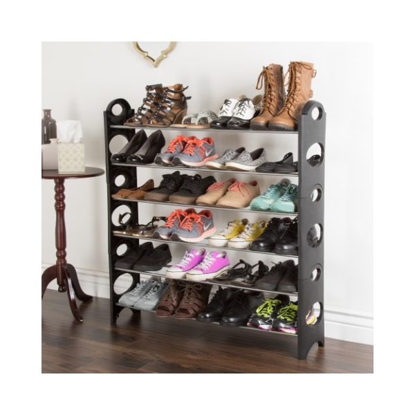 Neatly store all your shoes with the Hastings Home 6-Tier Shoe Rack. The 6 tiers of shelving provides storage space for up to 24 pairs of running shoes, heels, boots, or flats. This sturdy unit of shelves is made from high-quality plastic and is sure to provide space-saving storage for years to come.