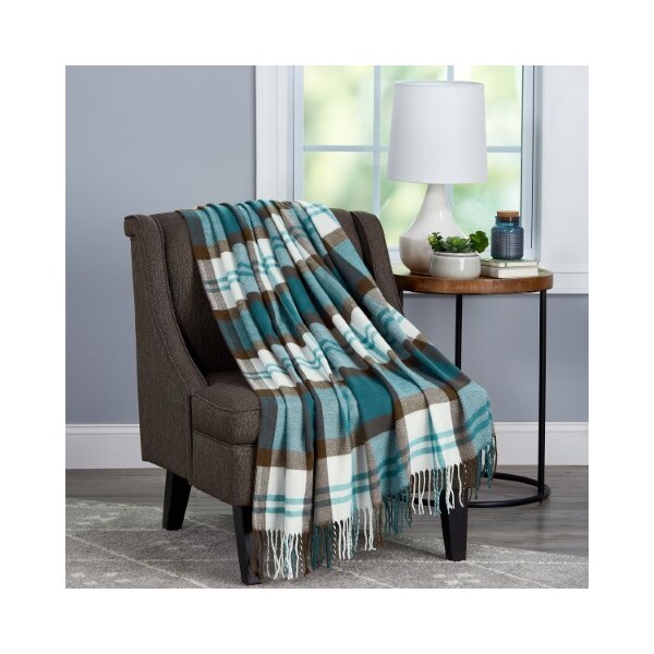 Experience the luxurious plushness of the Faux Cashmere Acrylic Throw Blanket by Hastings Home. This plaid blanket is made of 100 Percent high-quality acrylic that's woven to feel as soft as cashmere. It's resistant to damage from moths, mold and fading, making it ideal for indoor and outdoor use. The blanket measures 70 inches long and 60 inches wide, making it larger than most other throws and great for lounging and for use as a bedspread. The woven material is breathable for use in warmer weather for softness and comfort that lasts. The black satin ribbon cross wrapping makes it great gift for housewarmings, weddings and Christmas. Hastings Home Your Style. Your Home.