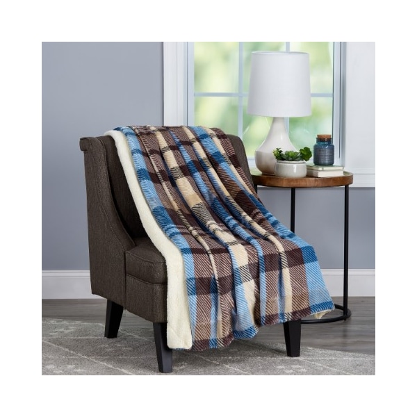 Blanket Throw - Oversized Plush Woven Polyester Sherpa Fleece Plaid Throw - Breathable (Horizon)