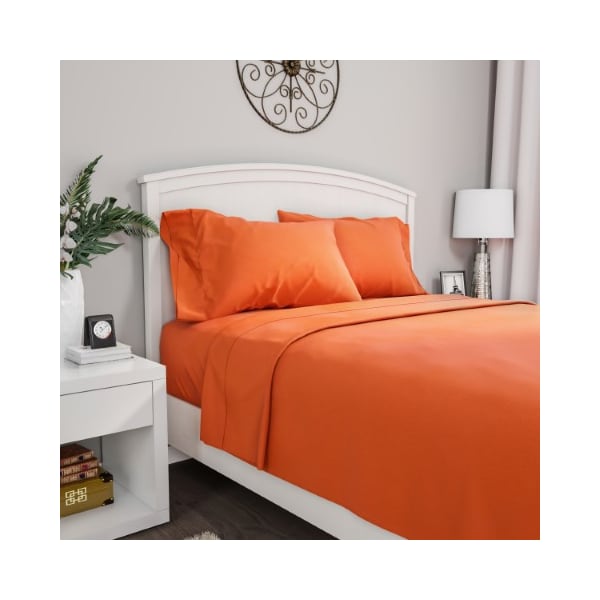 Brushed Microfiber 4-piece Bed Linens with Fitted, Flat Sheet, and 2 Pillowcases (Queen, Orange)