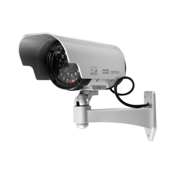 The Dummy Security Camera from Hastings Home is a cost-effective deterrent for your home or business. This realistic surveillance camera decoy features a built-in mount for a wall or ceiling, adjustable tilt, warning decals and a red blinking LED light that offers a perfect imitation of an actual recording unit.