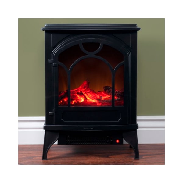 This Electric Fireplace by Hastings Home can heat up to 400 square feet and enhance your home decor with its colonial style and ambiance created by the glow of its flame. This freestanding space heater can be used in any room of your home or office and features faux logs with a realistic flame effect and adjustable heat settings. Operating at 750W on the low heat setting and at 1500W on high, this attractive electric heater also has a no heat option for year-round use without the care or maintenance of a real fireplace.