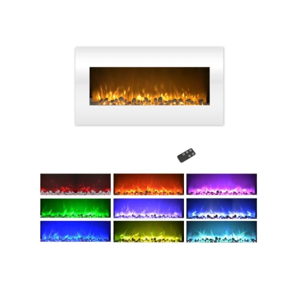 Electric Fireplace Wall Mounted, Color Changing LED Flame and Remote, 36 Inch, (White)