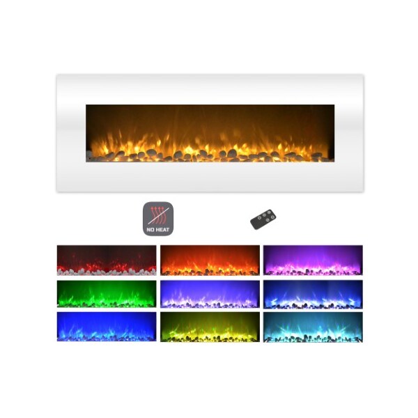 Bring the luxury and modern comfort of a real fire place to your home with this stunning 50-in Electric Fireplace, NO HEAT by Hastings Home. Along with energy-saving LED technology, this fireplace instantly transforms your living space into a completely unique atmosphere with adjustable brightness, 10 multicolor flame effects, and 3 media backgrounds. With the simple click of a remote, this contemporary electric fireplace creates a cozy and relaxing ambiance without heaters- allowing you a worry-free way to enhance your home or commercial space and enjoy this beautiful decor all year round!