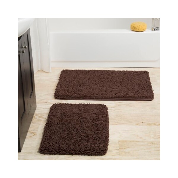 Hastings Home 2 Piece Memory Foam Shag Bath Mat - Chocolate