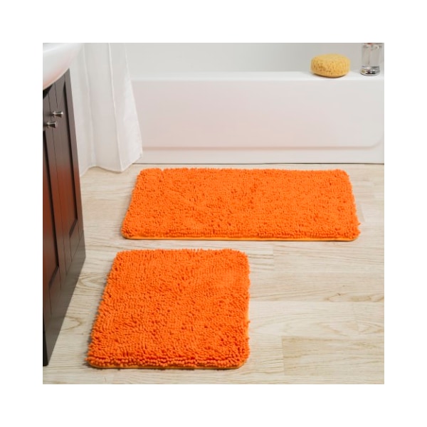 Hastings Home 2 Piece Memory Foam Shag Bath Mat - Orange