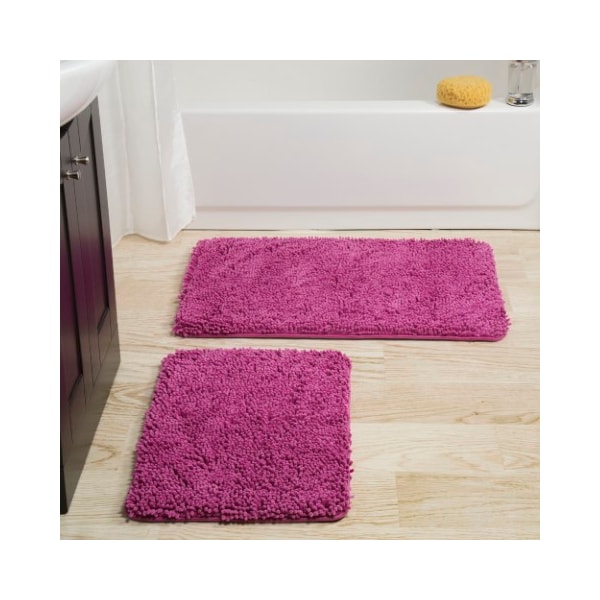 Step out of your tub and into luxury with the Memory Foam Shag 2 Piece Bath Mat Set by Hastings Home. Add a bold pop of style with high pile polyester chenille shag rugs. Featuring a soft and absorbent top layer of polyester chenille and a memory foam core bringing you maximum comfort while you dry off and get ready to start your day. Includes one over sized and one standard sized rug with non-skid bottom.