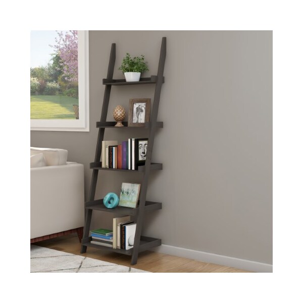 Artfully display or store home decor pieces or personal items with the Ladder Bookshelf by Hastings Home. The slate gray color and 5-tiers of open shelves combined with the ladder design will look fresh and modern in your home or office space. The MDF construction ensures this durable piece will last for years to come!