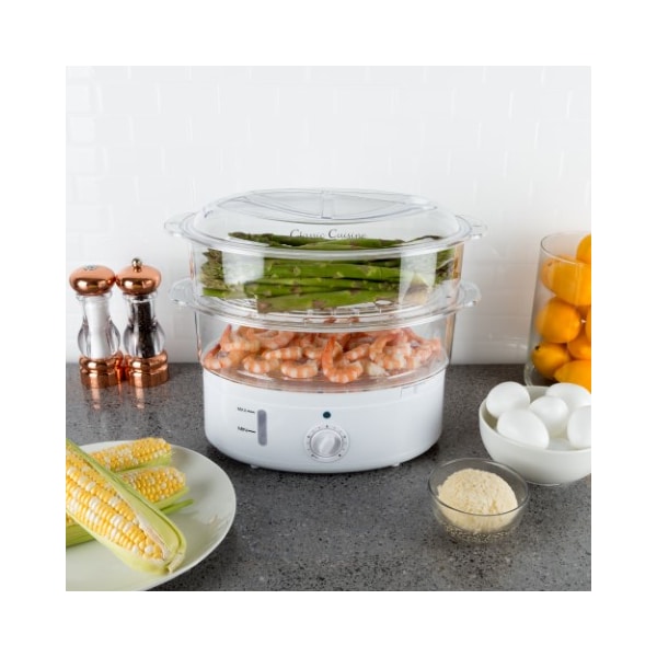 Cook healthy meals anytime with the Hastings Home Electric Food Steamer! The two tiers of stackable baskets allows you to effortlessly cook multiple foods at the same time, while the built-in timer ensures everything will be cooked to perfection. The steamer is ideal for cooking veggies, rice, meat, eggs, and more!