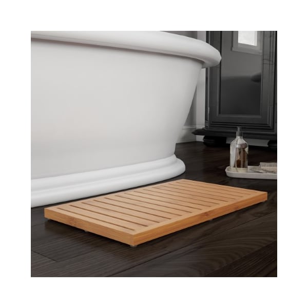 Enjoy elegance and sophistication with the modern Bamboo Bathmat from Hastings Home. Its versatile open slatted design offers drainage and air flow that allows you to be creative in placing this non-slip mat next to your bathroom tub, a stand-up shower, near a spa, in an outdoor sauna, or next to the pool. The eco-friendly bathmat is naturally odor and bacteria resistant and is sure to be the perfect addition to your home.
