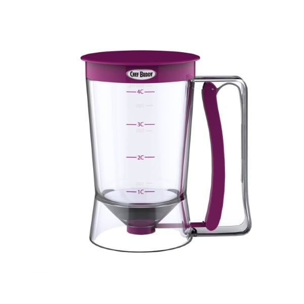 The Hastings Home Batter Dispenser makes it easy to portion and dispense your batter for perfect pancakes every time! The wide mouth opening, drip free nozzle and spring-loaded handle keep your baking conveniently mess free, while the cup and milliliter measurements on the dispenser make it simple to get consistently sized pancakes, waffles, cupcakes, or muffins!