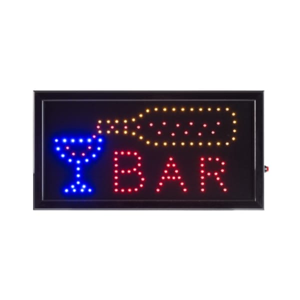 The Hastings Home LED "Bar" Sign is a fun decor piece for your home or business! With a vintage inspired design, this eye-catching electric sign features colorful text and even has an optional moving light function. Equipped with energy saving LED lights, this sign can last for up to 100,000 hours of use. With both triangle hooks on the back and a metal hanging cord included, you can easily install this vibrant piece in your garage, basement, kitchen or bar!