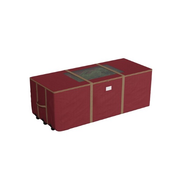 The Premium Rolling Christmas Tree Bag from Hastings Home has three roller blade style wheels that allow you to transport your disassembled 12-foot tree to its storage location with ease. The soft-sided canvas bag is lined with moisture resistant PVC so it can protect your artificial Christmas tree, holiday inflatables and decorations after the season. Designed with heavy-duty handles, zippers, a clear window for viewing the contents, and built-in straps for binding your tree within the bag, this durable storage bag is built to keep your decorations looking fresh for years!