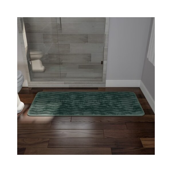 Microfiber Memory Foam Bathmat, Oversized Padded Nonslip Accent Rug Wave Pattern, for Home (Green)