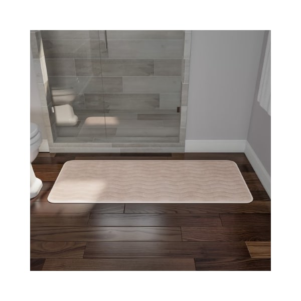 Add comfort and luxury to your bathroom, kitchen or laundry room with the Extra Long Memory Foam and Microfiber Bath Mat by Hastings Home. The 0.625-in thick memory foam provides plenty of soft, cushioned comfort as you step out of your tub or shower. The plush and super soft microfiber topper wicks away moisture and is machine washable for convenient and hassle free cleaning. With a length of five feet, this accent rug is great for bathrooms with double vanities, claw foot tubs or large walk-in showers. It's also great for use in the kitchen or laundry room for comfortable cushioning on your feet. The back of this oversized bathmat is nonskid, keeping It'safely in place as you dry off. The backing is also fast-drying to prevent mildew and keep your floors safe and dry. The fun wave pattern texture on this solid color mat brings cozy style to your home.