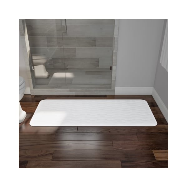 Microfiber Memory Foam Bathmat, Oversized Padded Nonslip Accent Rug Wave Pattern, for Home (White)