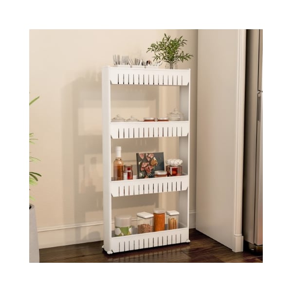 Mobile Shelving Unit Organizer, 4 Storage Baskets, Slim Slide Out Pantry Storage Rack